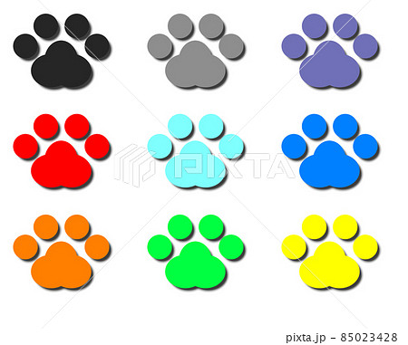 かわいい動物のカラフルな肉球イラストのイラスト素材